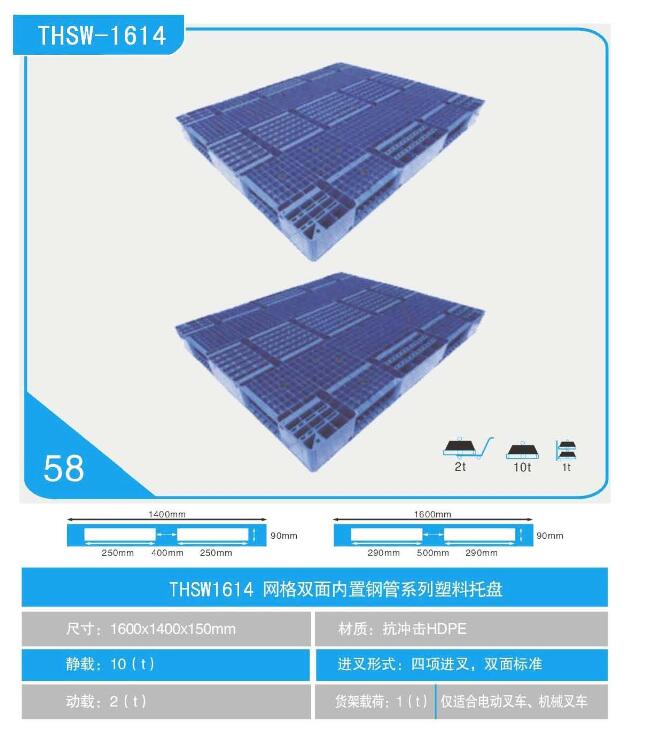THSW1614網(wǎng)格雙面內(nèi)置鋼管系列塑料托盤